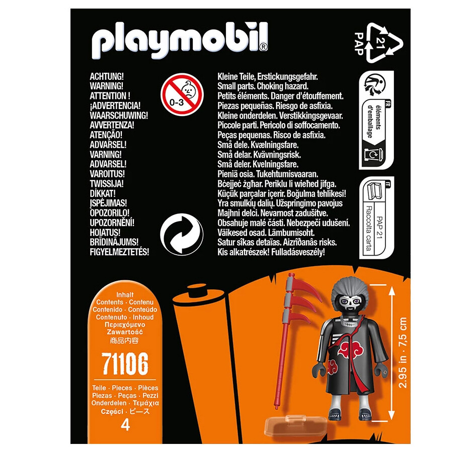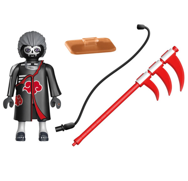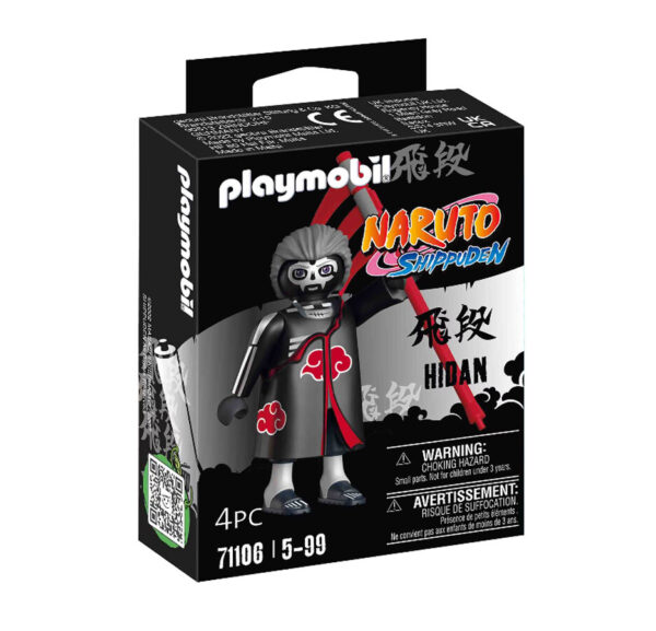 Той носи черното наметало на Акацуки и държи огромен ятаган с три остриета, с които тероризира опонентите си. Хидан е член на Акацуки и фанатичен последовател на Джашинизма. Благодарение на своята религия той е безсмъртен и може да прокълне противниците си с ритуал. По време на ритуала му кожата му почернява и показва бели линии, напомнящи скелет. Хидан не уважава нищо и никого. В продължение на две десетилетия анимето Naruto Shippuden радва феновете по целия свят. Точно навреме за 20-ата годишнина, първите уникални герои от популярната поредица вече се появяват във формат PLAYMOBIL. Със страхотни детайли и автентични екстри, прецизно проектираните фигури ви канят да пресъздадете легендарни сцени и да измислите нови истории.